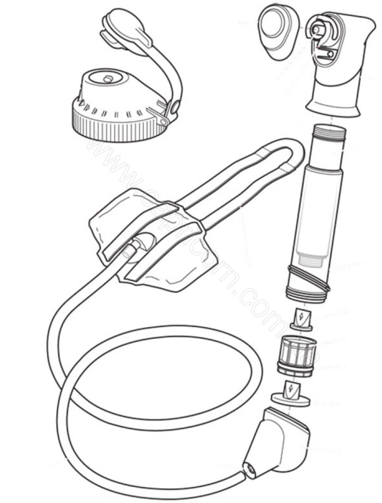 В комплекте переходник для фляг, емкостей для воды и питьевых систем с широким горлом, компактный чехол.
