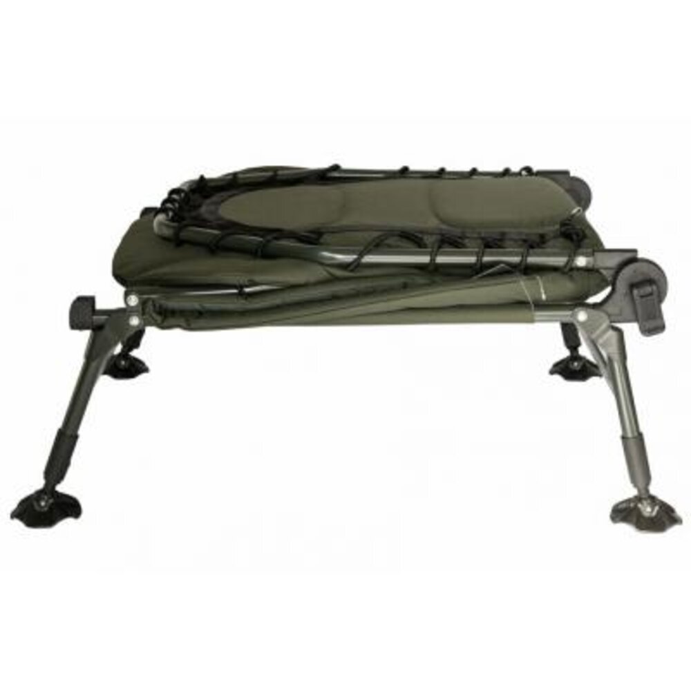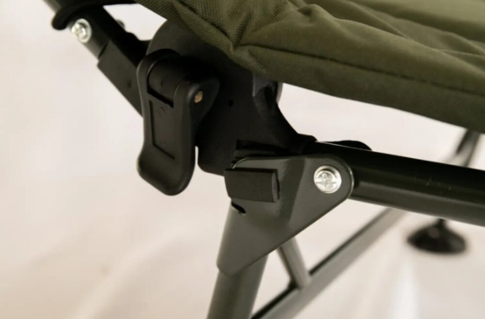 CARP KING TRF-028 - простая надежная раскладушка увеличенного размера. Имеет прочный стальной каркас, мягкий матрас с подголовником, регуляцию наклона спинки и высоты ножек. Выдерживает вес до 150 кг. Будет удобна рыбакам и отдыхающим в кемпинге.