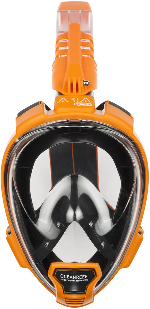 ARIA QR+ - полнолицевая маска для сноркелинга. Позволяет дышать одинаково легко как через рот, так и через нос во время плавания. Имеет большой угол обзора и "сухой" клапан, препятствующий попаданию воды внутрь трубки при нырянии.