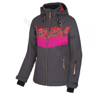 HESTER-R flowers orange - женская утепленная куртка с яркой вставкой и цветочным орнаментом. Выполнена из мембранной ткани, имеет регулируемый капюшон, встроенную снежную юбку и карманы для ски-пасса и нужных мелочей.