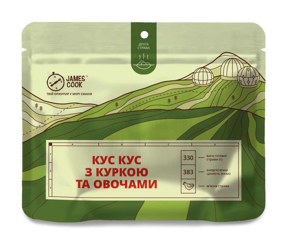 Характеристики блюда JAMES COOK Кус-кус с сублимированной курицей и овощами: