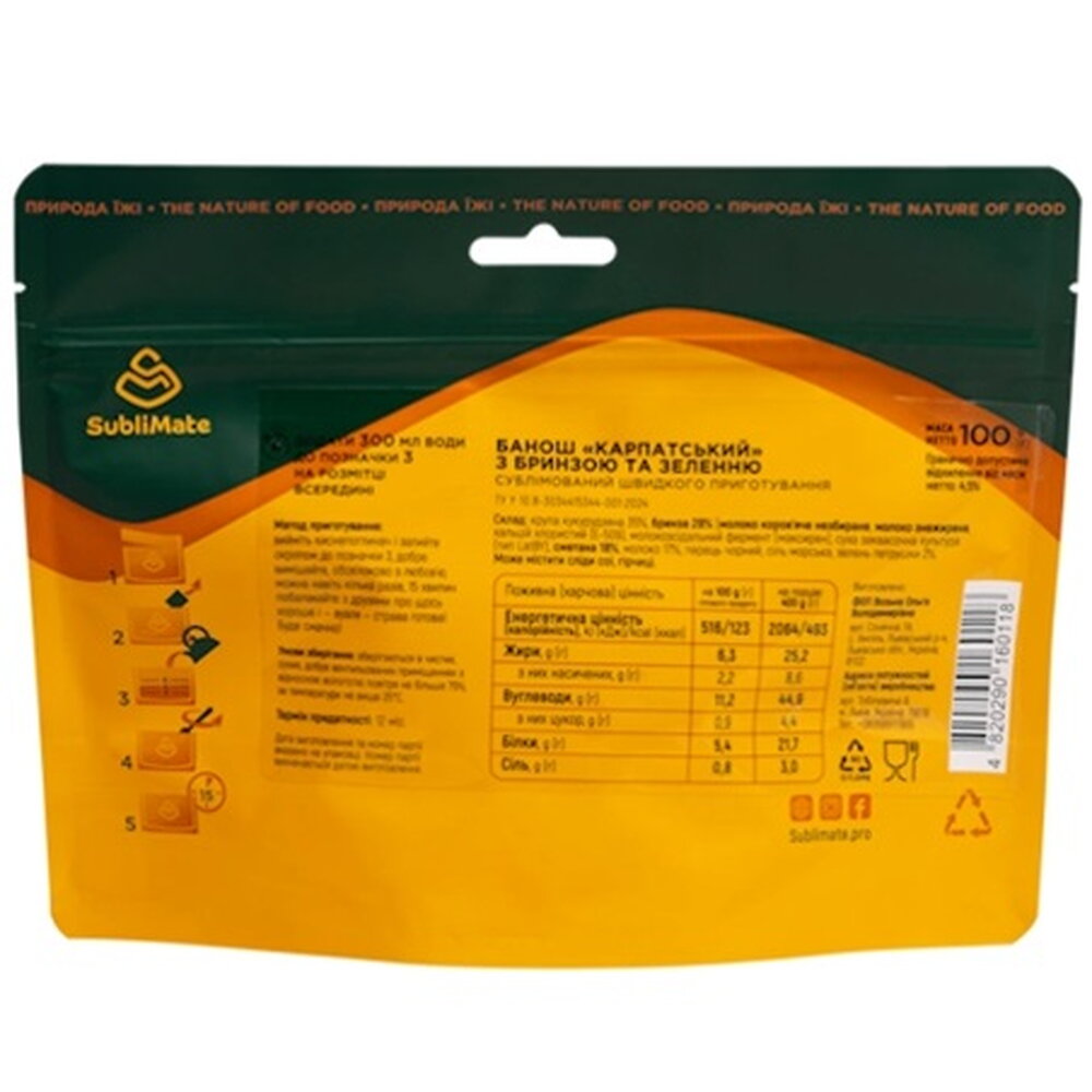 Характеристики и описание Еда быстрого приготовления SubliMate Банош карпатский с бринзой