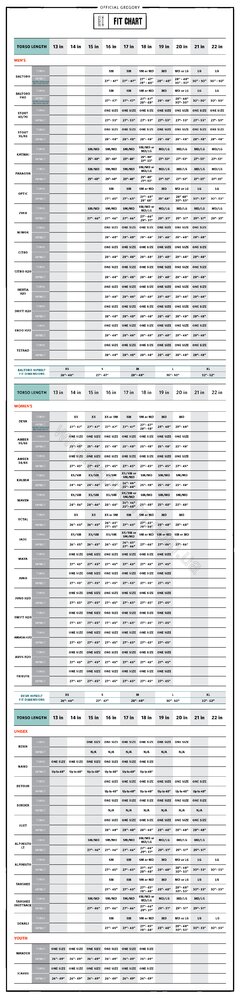 - регулировка высоты спины осуществляется позиционированием плечевых лямок относительно спины рюкзака; фиксация в выбранном положении осуществляется с помощью липучек Velcro