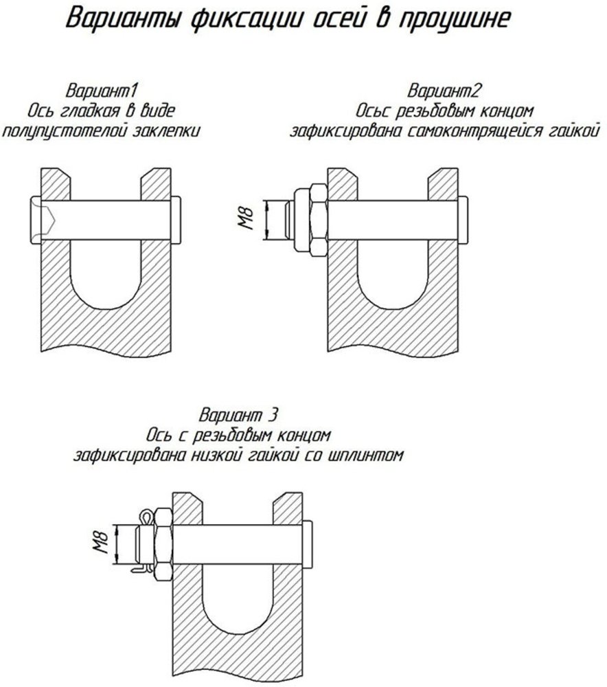 - одна из точек шакла неразъемная (кольцо), другая - разъемная и зафиксирована самоконтрящейся гайкой