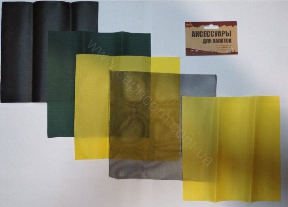 TRA-043 - набір латок для ремонту наметів. Включає п'ять квадратів тканин розміром 20 х 20 см для ремонту тенту, підлоги, стін внутрішнього намету і сітки. Підходить для всіх наметів Tramp і наметів інших фірм.