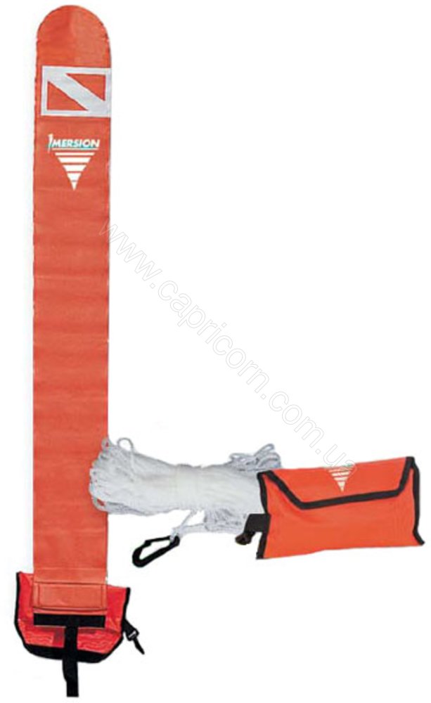Декомпресійний буй Imersion дуже зручний як у використанні, так і при транспортуванні. Помаранчевий буй складається в спеціальну вшиту кишеню компактних розмірів, має спеціальний карабін і лінь.