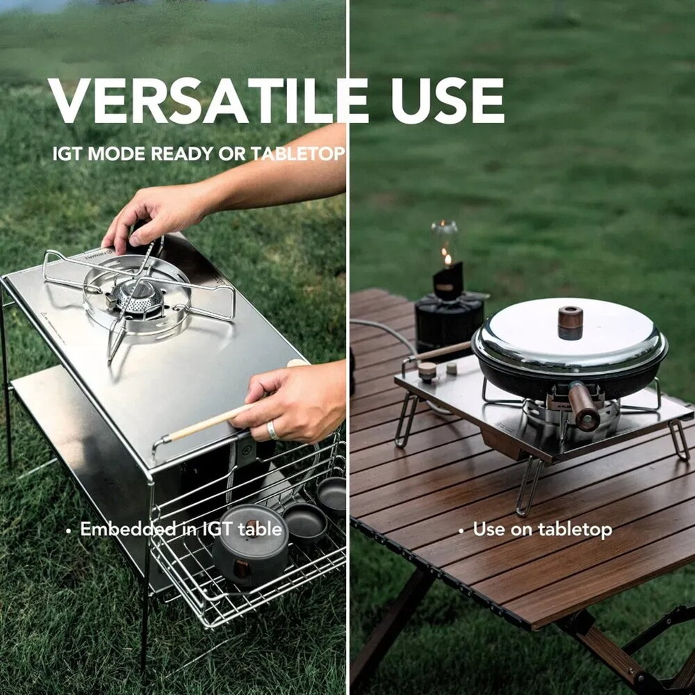 - має модульний дизайн і може бути інтегрована у польову кухню або стояти на ніжках на кемпінговому столику
