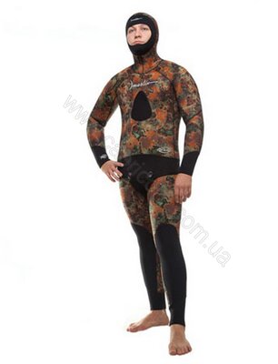 Гідрокостюм для підводного полювання Skilur камуфляжного забарвлення фірми Marlin з високими штанами Long John, які закривають всю область грудей і спину. Виготовлений з еластичного неопрена товщиною 7 мм, зовнішній матеріал - лайкра, всередині - відкрита пора. На штанях в області грудей використовується більш тонкий неопрен, для більшого комфорту. Обтюрація з неопрену smooth skin на рукавах, штанинах і шоломі. Область колін і ліктів посилено спеціальними захисними накладками з матеріалу Duratex. Модель має анатомічний крій (що забезпечує відмінну посадку), а також спеціальну накладку на грудях для упору при заряджанні рушниці.
