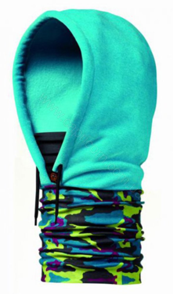 Унікальний, стильний, багатофункціональний, комфортний головний убір Hoodie Buff з капюшоном. Виконаний з матеріалу Polartec Thermal Pro, окремі частини виконані з мікрофібри. Відмінний варіант захисту в холодну пору року, завдяки подвійному шару мікрофібри в області шиї і шару мікрофібри, що закриває нижню частину обличчя (ніс, підборіддя). Капюшон має шнур для регулювання розміру.