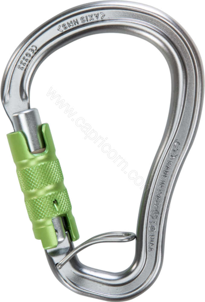 Axis HMS TGL - великий анодований карабін HMS-форми з широким розкриттям і автоматичною муфтою. Виготовлений з легкого алюмінієвого сплаву методом гарячого кування. Використовується для організації навіски, розвішування великої кількості спорядження на страхувальної станції, зі спусковими та страхувальними пристроями або спуску за допомогою вузла Мунтера (UIAA). Виготовлений на заводі компанії Climbing Technology в Італії та відповідає всім європейським стандартам безпеки.