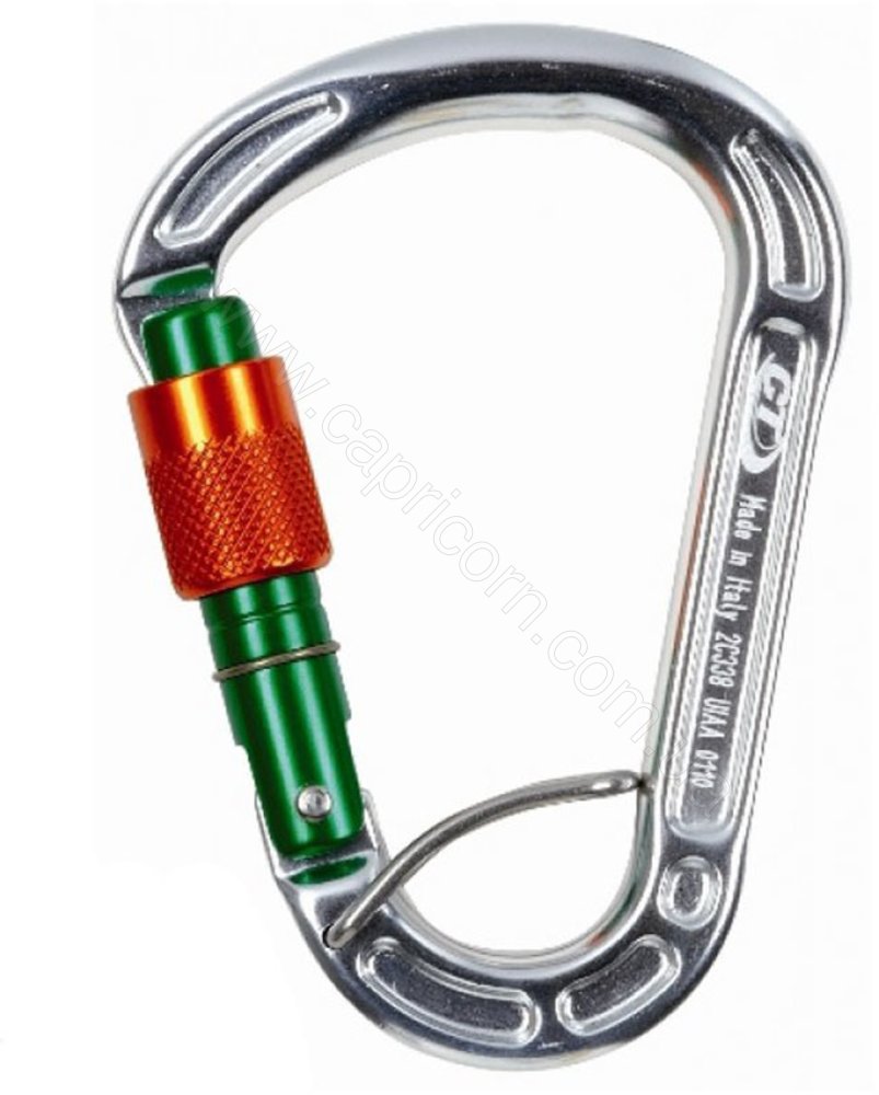 Полірований карабін Concept SGL фірми Climbing Technology з надійною гвинтовою муфтою, keylock. Защіпка для фіксації мотузки біля основи карабіна.