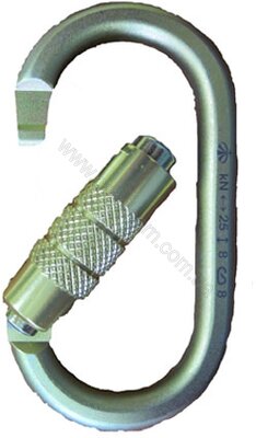 Універсальний сталевий карабін овал Люкс автомат Keylock фірми Вертикаль. Завдяки своїй міцності він може застосовуватися в рятувальних роботах.