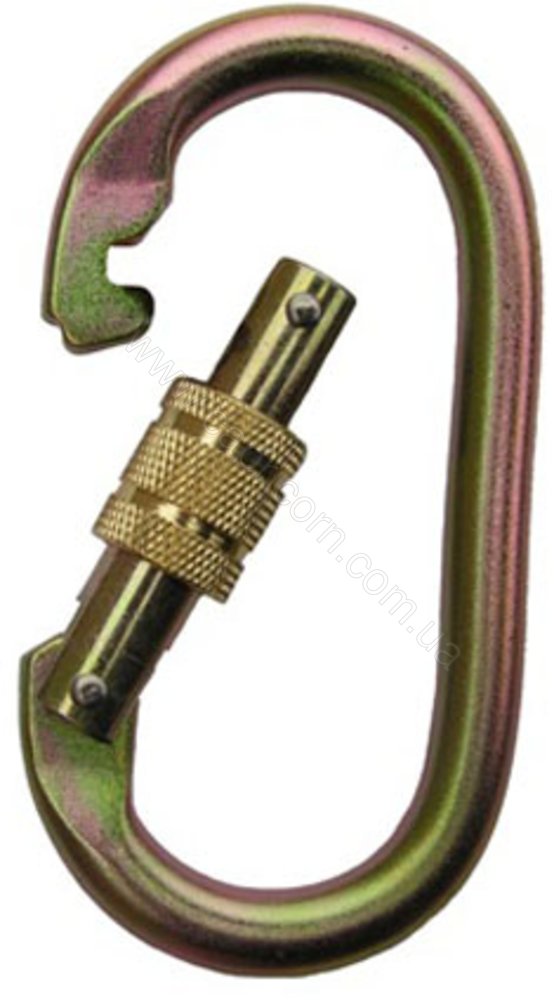 Универсальный стальной карабин Вертикаль Овал с надежной винтовой муфтой. Благодаря своей прочности он может применятся в спасательных работах.