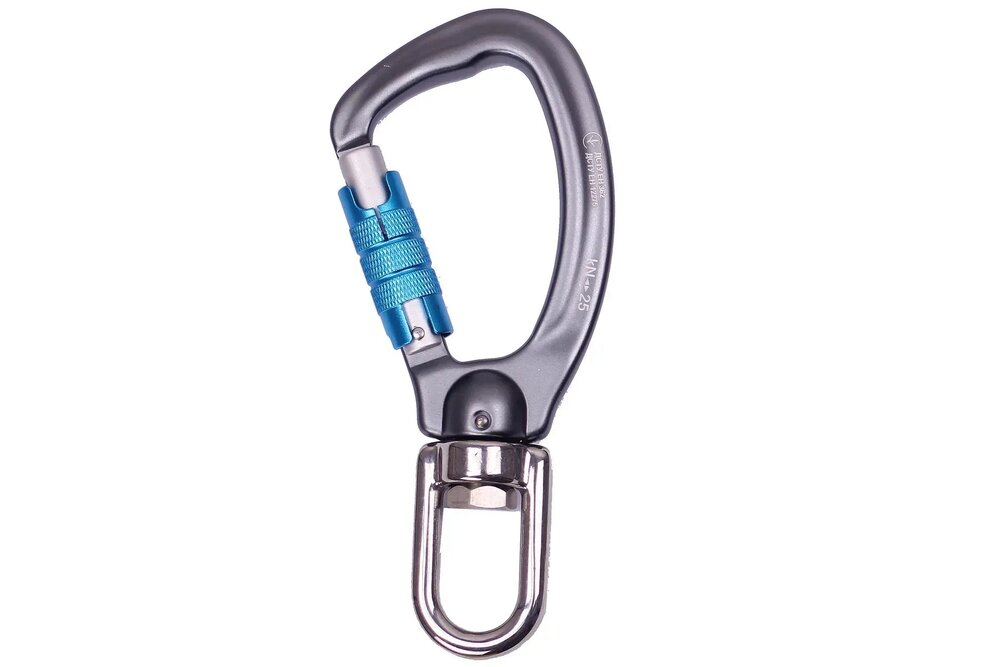 WIND - карабін з автоматичною муфтою та вертлюгом. Перешкоджає скручування мотузок під час проведення робіт, пов'язаних з підйомом та переміщенням вантажів.