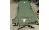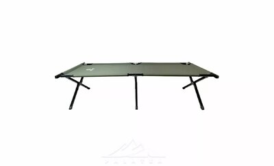 Camping Bed – проста надійна розкладачка. Має сталевий каркас та міцну тканину спального місця. Витримує вагу до 110 кг. Буде зручна військовим, рибалкам та відпочивальникам у кемпінгу.