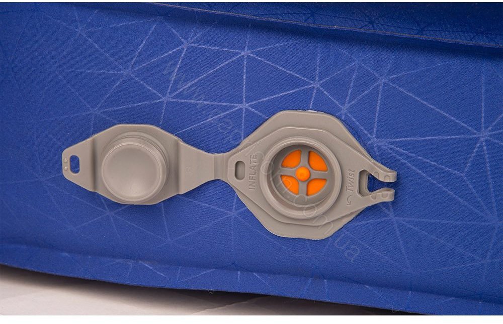 - низькопрофільний багатофункціональний плаский клапан забезпечує швидке і легке надування при розгортанні килимка, але перешкоджає надування килимка при його спаковуванні