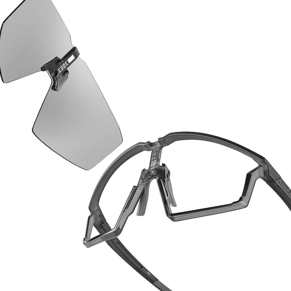 Edge J5621145 – окуляри зі змінними лінзами, спеціально розроблені для активних видів спорту. Завдяки легкій та обтічній оправі забезпечують максимальне поле зору, а магнітна кліпса дозволяє швидко замінити лінзу на прозору. Чудово сідають під велошолом, зручні для велоспорту та бігу.