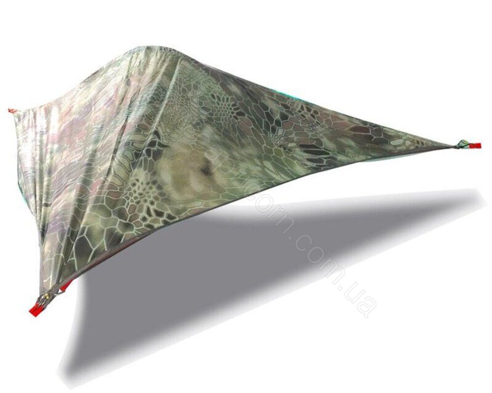 FLITE + 2-PERSON TREE TENT- абсолютно новий напрямок в "наметобудуванні" - підвісна конструкція, яка поєднує кращі властивості гамака і звичайного намету. Має два шари - тент і внутрішній намет, які за принципом будови схожі зі звичайним наметом, але розтягуються між деревами або іншими опорами як гамак, оберігаючи жителів від нерівної, похилій або кам'янистій поверхні, вологого ґрунту і дрібної живності, яка прагне залізти всередину. Матеріал такого намету стійкий до впливу ультрафіолету, посилений стропами для рівномірного розподілу навантаження і має відмінну механічну міцність. Намет розрахована на комфортний відпочинок і сон для двох осіб.