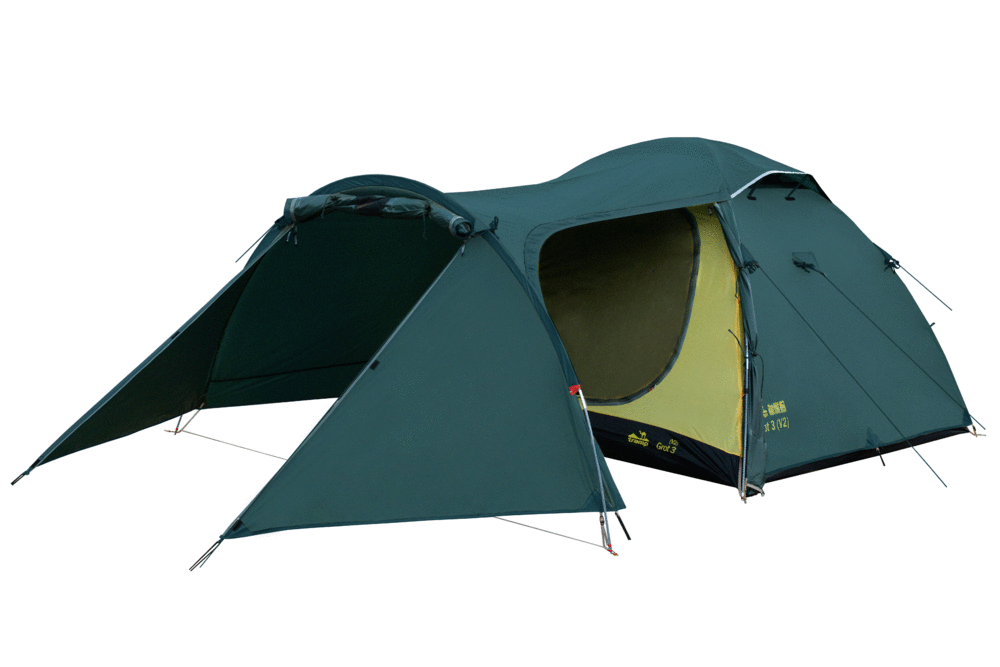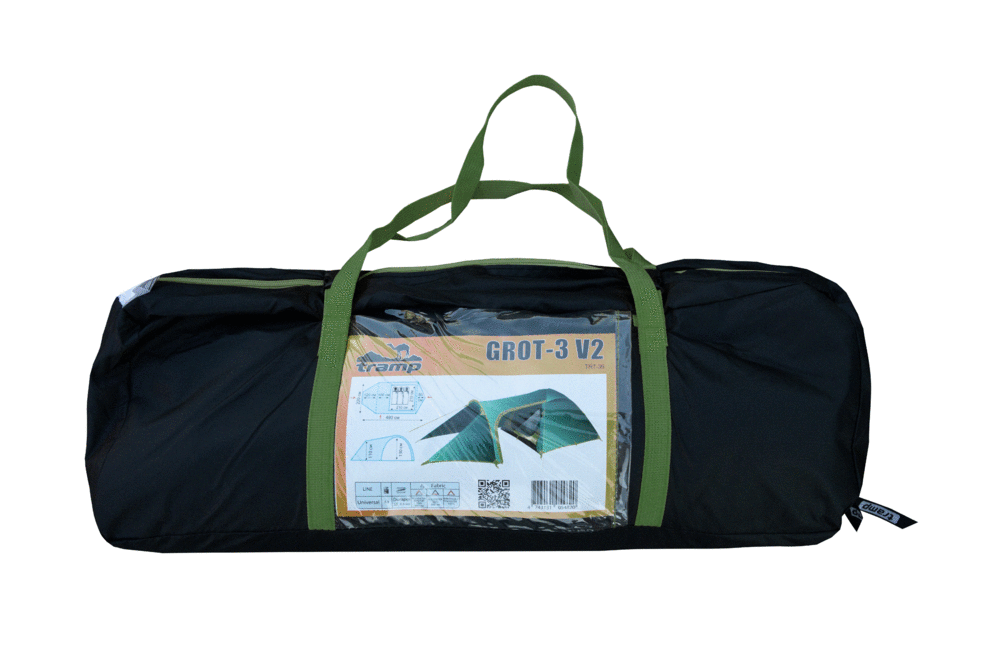 Grot 3 (v2) green - просторий тримісний намет з однією спальнею та двома тамбурами. Великий тамбур дозволяє легко розмістити в ньому спорядження, готувати їжу в негоду і навіть прийняти кількох гостей.