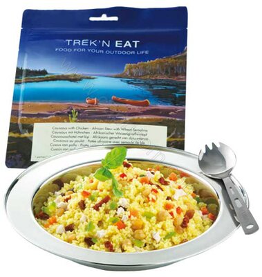 Африканське блюдо кускус з куркою Trek'n Eat - сублімований продукт, незамінний в походах, сходженнях, подорожах і експедиціях. Сублімація дозволяє зберегти первинний смак страви, поживні речовини, вітаміни і мікроелементи при невеликій вазі в порівнянні з тією ж кількістю свіжих продуктів.