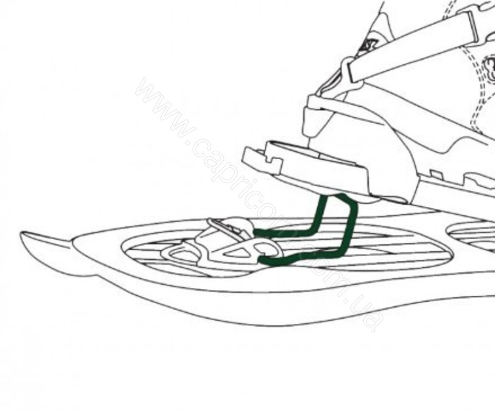 - сталеві підйомні планки для п'яти полегшують ходьбу під час підйому та зменшують втому м'язів гомілки, а встановлюються в робоче положення простим натисканням трекінгової палиці, не знімаючи снігоступів