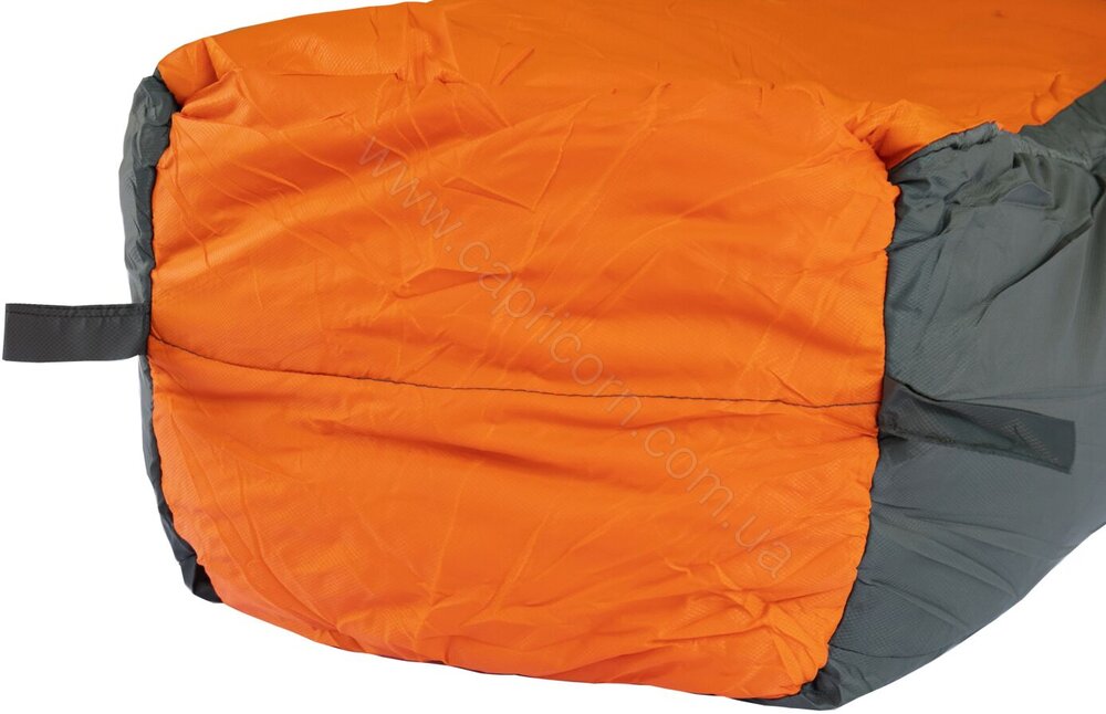 об'ємна конструкція нижньої частини спальника сприяє природному і вільному розташуванню ступнів всередині без непотрібного натягування тканини та здавлювання ніг