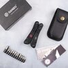 G301-B - незамінний інструмент як у домашньому побуті, так і при виїздах на природу, у походах, на рибалці та кемпінгу. Зроблений із високоякісної сталі 440C, має 12 інструментів та комплект змінних біт з адаптером. У комплекті також є щільний нейлоновий чохол із кріпленням на пояс.