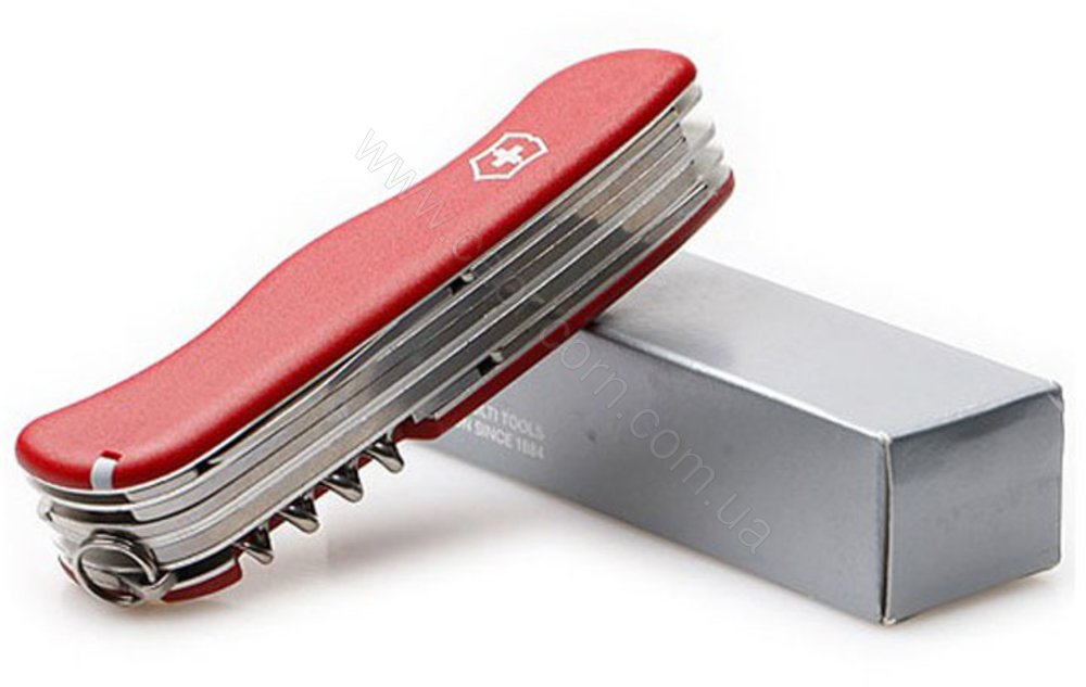 Швейцарський солдатський складаний ніж Hercules з великим лезом що фіксується фірми Victorinox в якому є безліч функцій. Довжина руків'я ножа становить 111 мм, всі робочі деталі виготовлені з якісної нержавіючої сталі. Фіксатор утримує клинок у відкритому стані.