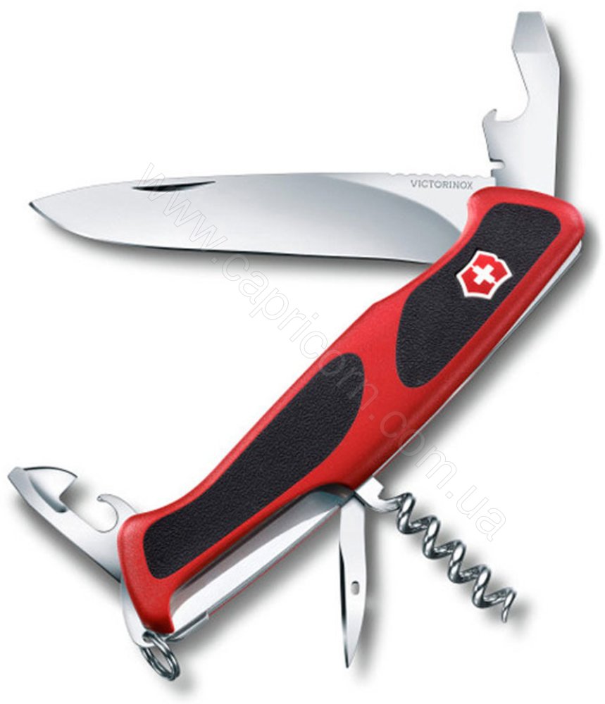 Швейцарський ніж Rangergrip 68 0.9553.C з великим лезом що фіксується фірми Victorinox в якому є безліч функцій. Довжина руків'я ножа становить 130 мм, всі робочі деталі виготовлені з якісної нержавіючої сталі. Фіксатор утримує клинок у відкритому стані. Руків'я виконане з спеціально обробленого нейлону, що виключає прослизання.