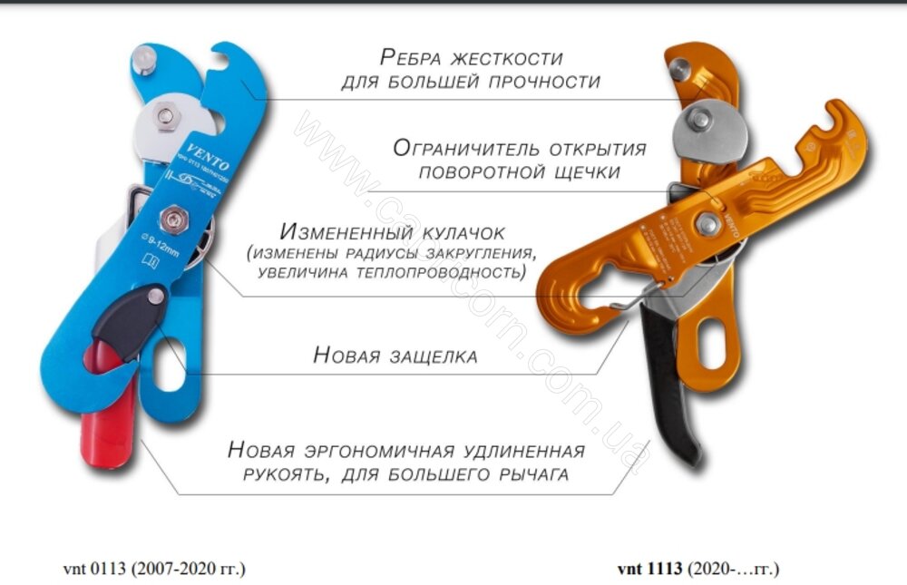 Стопор-десантер VNT1113 - оновлена версія спускового пристрою Венто стопор-десантер. Призначений для спуску по одинарній мотузці діаметром 10-12 мм, має функцію контролю швидкості та самоблокування в разі відпускання ручки. Розроблений для тривалих спусків.