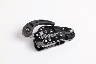 - кнопка в торці дозволяє перевести пристрій у режим страхувального (типу ASAP) - при затиснутій кнопці пристрій здатний вільно пересуватися по мотузці вгору/вниз і блокуватися під час різкого ривка