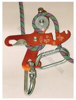 пристрій, який приєднаний до кулачка жумара, дозволяє використовувати панічний рефлекс користувача для миттєвої та безвідмовної зупинки затискача на робочій мотузці