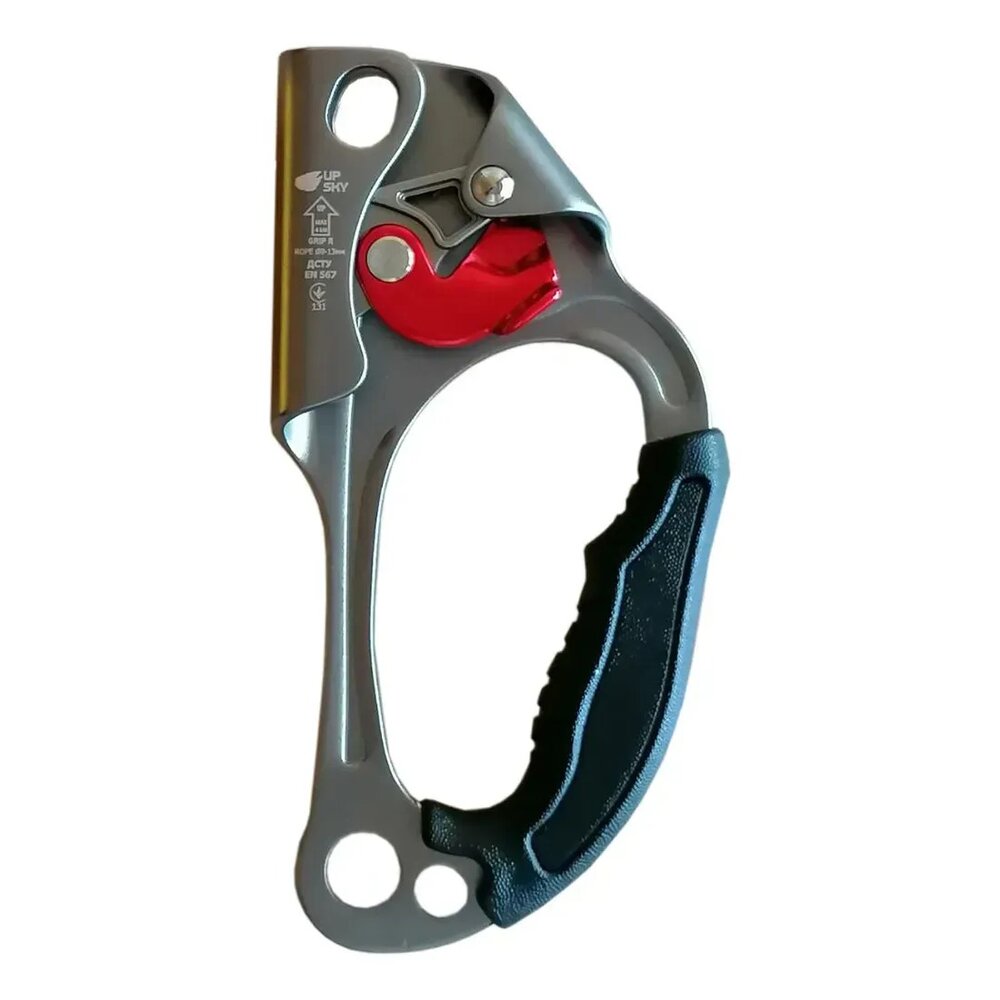 Grip правий - затискач типу "жумар" із легкого сплаву. Зручний для захоплення правою рукою. Призначений для підйому мотузкою в альпінізмі, гірському туризмі, промисловому альпінізмі та спелеології.