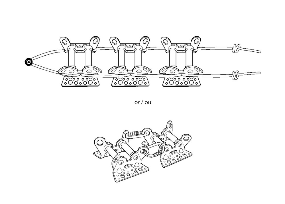 - кілька модулів можна з'єднати разом за допомогою рапідів, карабінів або шнура